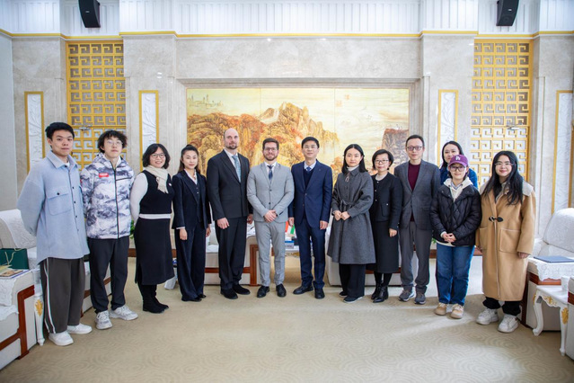 3月25日上午,匈牙利驻沪总领事罗亚当(Róma Ádám)率文化领事洋风(Dr. Füle János Róbert)、文化教育处助理付蕊一行访问上海外国语大学。校党委副书记吴利瑞在松江校区接待来宾。